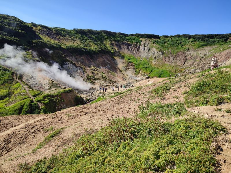 посетили бухту Русскую, где смогли близко подплыть к лежбищу сивучей и нерп - подобрались к этим опасным в гневе «морским львам» всего на 5-10 метров. Удивлялись черному песку. Кое-кто попробовал искупаться в океане - вода в нем даже летом ледяная, но не этим опасен океан, а мощнейшими подводными течениями, способными утащить человека в глубину; местные в океане не купаются. Поражались богатейшей местной природе, ягодам и прочим богатствам в лесах - куда, впрочем, лучше не заходить, потому что это - вотчина медведей.