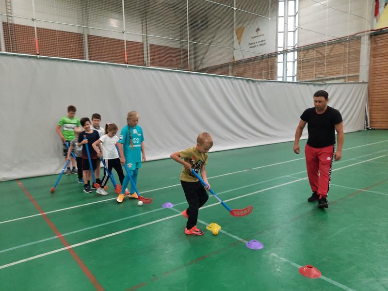 ребята увлеченно тренируются. В флорболе мячик - легкий и дырявый, как