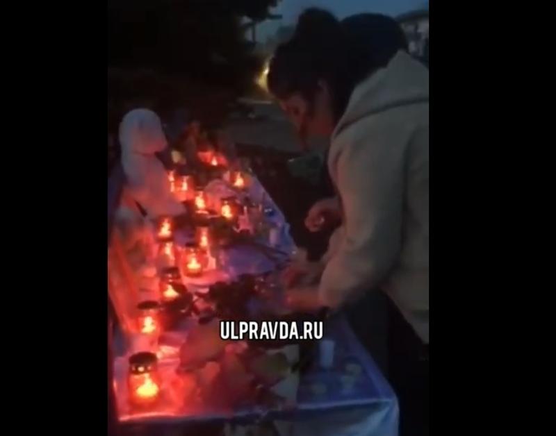 стихийный мемориал на месте гибели детей, он снят на видео. Этой трагедии не