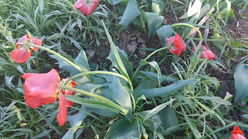 Фото убитых морозом цветов прислала в редакцию уже другая жительница города - у нее тоже мороз поразил тюльпаны. Женщины надеются, что дневное солнце их отогреет.