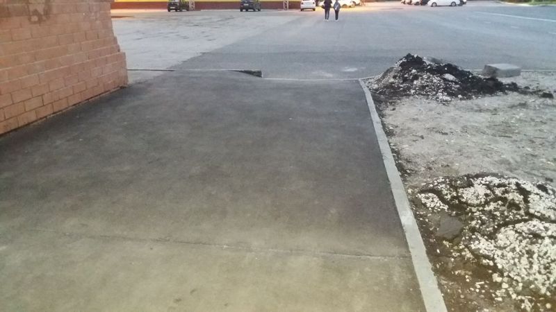незавершенным ремонтом - в самом конце тротуара участок порядка двух квадратных метров мало напоминал качественно проведенную работу. Стало ясно, что при завершении укладки асфальта его не хватило, чтобы уложить положенной толщины, поэтому асфальт попросту размазали по щебенке. В таким виде тротуар озадачивал прохожих несколько недель. Правда, местные жители были уверены, что на этом дело не закончится, и ремонтники вернутся, но их визит затягивался. Но вот недавно тротуар был приведен в надлежащий вид.