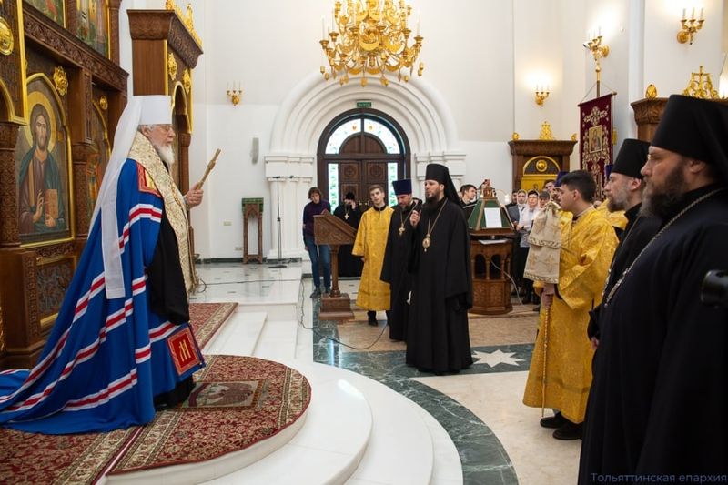 Праздничная программа началась с молебна, который совершил Высокопреосвященный владыка Сергий в храме Трех Святителей Поволжской академии образования и искусств. На молебне присутствовали епископ Тольяттинский и Жигулёвский Нестор, епископ Кинельский и Безенчукский Софроний и епископ Сызранский и Шигонский Леонтий, священнослужители Самарской и Тольяттинской епархий.