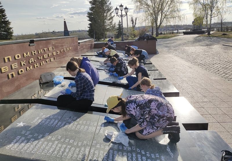На территории мемориального комплекса у сызранского кремля к торжествам в честь Великой Победы обновили надписи на плитах братских захоронений. Работы выполнили учащиеся и преподаватели Детской школы искусств имени А.И. Островского, курсанты Сызранского ВВАУЛ, простые жители города. Акцию «Мы помним! Мы гордимся!» проводили по инициативе Центра музыкального искусства Сызрани. Тонкая работа, в которой проявили себя сызранцы разных поколений, в том числе и дети, была завершена за несколько дней до торжеств в честь Дня Победы. Днем 8 мая на территории мемориального комплекса к вечному огню возложили цветы в рамках акции