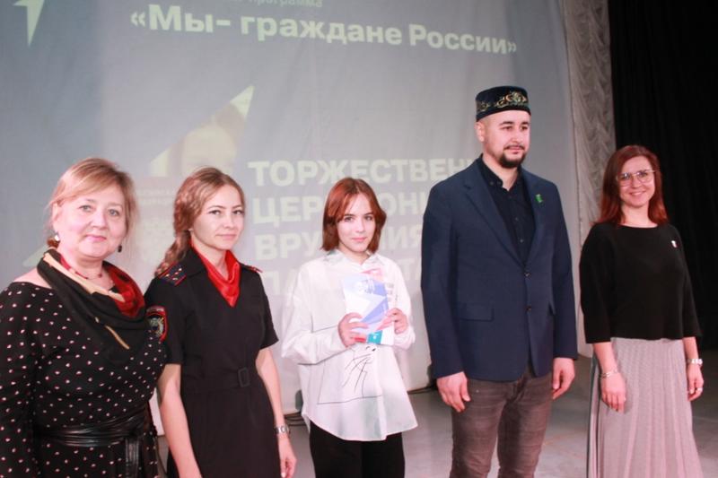 Подростки из Октябрьска и сел Сызранского и Шигонского районов вместе с сызранцами прибыли во Дворец творчества ради важного в своей жизни события: 23 ноября 14-летним участникам акции «Мы - граждане России» вручали паспорта. На сцену Дворца поднялись 26 юных жителей Сызрани и Правобережья, имеющим заслуги в учебе, творчестве, научной, общественной, спортивной жизни и волонтерской деятельности. В торжественном вручении паспортов приняли участие сотрудник отдела по вопросам миграции и представитель Общественного совета при МУ МВД России «Сызранское», представители исполнительной власти Сызрани и Правобережья и представитель «Движения Первых». Выступающие поздравили ребят со знаменательным событием в их жизни, пожелав им не останавливаться на достигнутых результатах, а дальше своими поступками, успехами и добрыми делами прославлять свою малую Родину и свою великую страну - Россию.