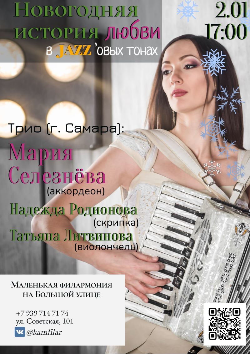 Но есть и другие мероприятия, которые пройдут в коммерческих заведениях. Например, в Камерной Филармонии на ул.Советской в продаже все еще имеются билеты на концерт Трио с участием известной артистки Марии Селезнёвой.