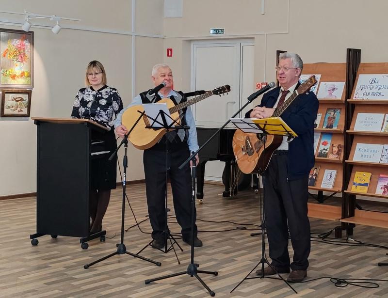 В преддверии Международного женского дня в зале Центральной городской библиотеки им. Е.И.Аркадьева состоялась музыкально-литературная встреча «Ты, женщина – Вселенная любви!». Праздничным подарком для милых дам стала концертная программа с участием членов городского клуба авторской песни и поэзии Владимира Варламова и Виктора Железнова. Барды исполнили песни и романсы, посвященные любви и весне: «Тобой живу», «Царевна Несмеяна», «Зорька алая», «Горький мед», «Старый причал», «Моя звезда», «Очарована, околдована» и другие. Владимир Варламов продекламировал стихотворения собственного сочинения, которые посвятил женскому празднику: «Милым женщинам Сызрани», «8 марта», «Милой ласточке». Зрительницы праздничной встречи поблагодарили исполнителей и сотрудников библиотеки за приятные эмоции и впечатления.
