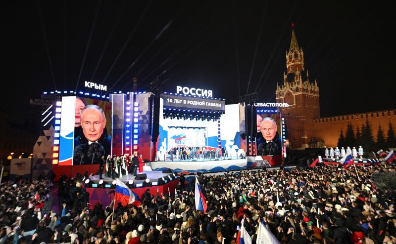 В десятую годовщину воссоединения Республики Крым и города Севастополя с Российской Федерацией на Красной площади состоялся митинг-концерт