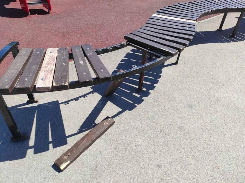 Женщина присела отдохнуть на «беззубую» скамейку - и испортила одежду: над детской площадкой в Сызрани снова поиздевались