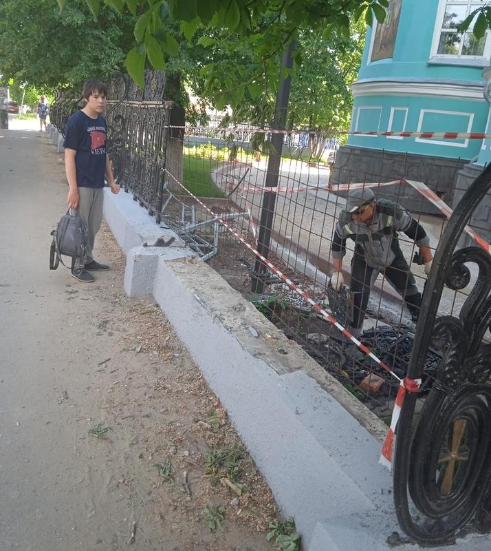 Идет ремонт ограды сызранского собора, на которой на днях повис автомобиль