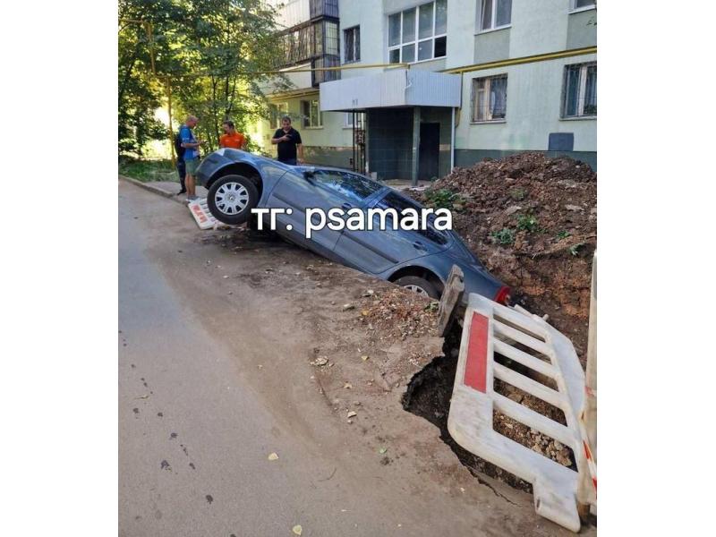 В Самарской области машина въехала в яму и поранила кошку: очевидцы переживают не столько за владельца автомобиля, сколько за бедное животное. О необычном ДТП стало известно из сообщения в соцсетях, очевидцы опубликовали фото иномарки, водитель которой, возможно, сдавал назад и не заметил ограждение у ямы, выкопанной, к слову, во дворе самарского дома около недели назад. Как сообщили очевидцы, яма была разрыта из-за аварии на трубопроводе - судя по посту в сети, самарские коммунальщики поставили ограждение и ушли, не спеша ликвидировать аварию. В итоге, к коммунальной аварии добавилась дорожная, и не только.