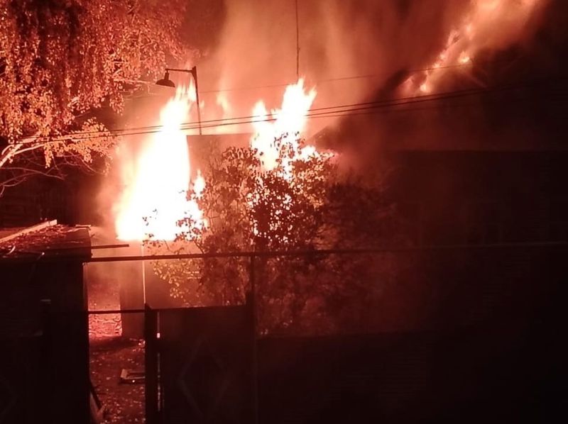 сгоревшего дома - видимо, у них не было шанса выбраться наружу. Спасатели Центра по делам ГО, ПБ и ЧС сообщили новые подробности тушения ночного пожара, во время которого погибли люди, и поделились фото с места ЧП. На фотографиях - полыхающий факелом дом внутри двора и пожарные, которые поначалу могли достать струей воды до горящего дома только из-за забора - настолько нестерпимым был жар. Напомним, пожар вспыхнул в доме сегодня в 02:23. Пожарные прибыли через 10 минут после вызова, но дом был настолько объят пламенем, что ликвидировать открытое горение удалось лишь в 03:20, а полностью потушить дом площадью 60 кв. метров - в 06:19. В доме работало звено газодымозащитной службы: эти пожарные и обнаружили тела погибших.