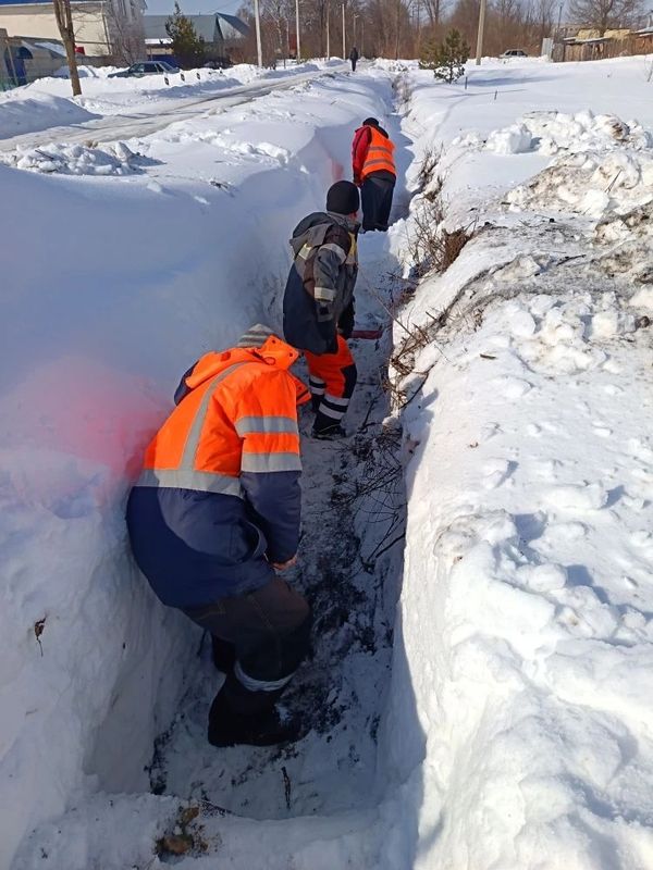 Рабочие МКУ «Благоустройство» по грудь закопались в снегу, расчищая водоотводные каналы. По каналам вот-вот должны двинуться потоки талой воды. На фото запечатлен процесс по ул. 1-ой Сормовской в районе домов №№16, 18, 20. Одни сотрудники работают за пределами частных домов, другие зашли в огороды и там прочищают водоотводные каналы, чтобы вода ушла, не причинив вреда имуществу жителей улиц Сормовских. Напомним, одной из причин ежегодного ЧП стало экологическое бедствие, которое произошло на полях Сызранского района, граничащих с жилым сектором, в 90-х гг. прошлого века. Порыв на магистральном трубопроводе привел к загрязнению сельскохозяйственных почв нефтепродуктами. Грязный грунт собрали, вывезли на грузовиках - и естественный ландшафт изменился. Примерно с того времени Сормовский стало активно подтапливать.