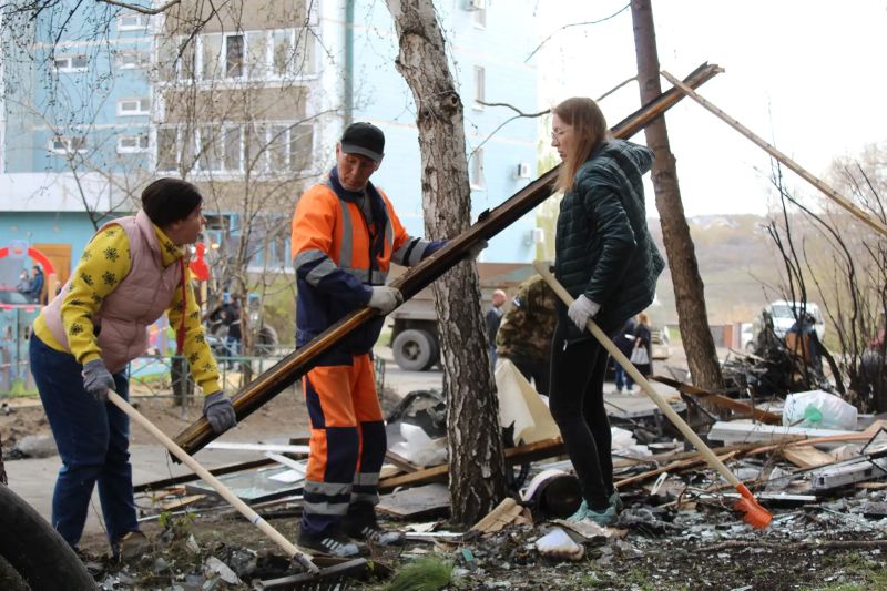 Жители Юго-Западного района вышли на уборку после атаки БПЛА