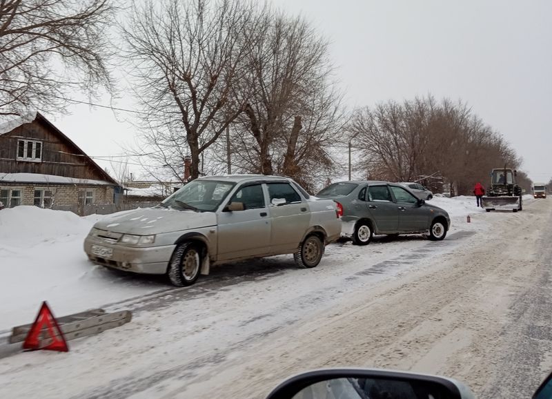 На улице Мира столкновение двух автомобилей. Один из них улетел в сугроб на обочине