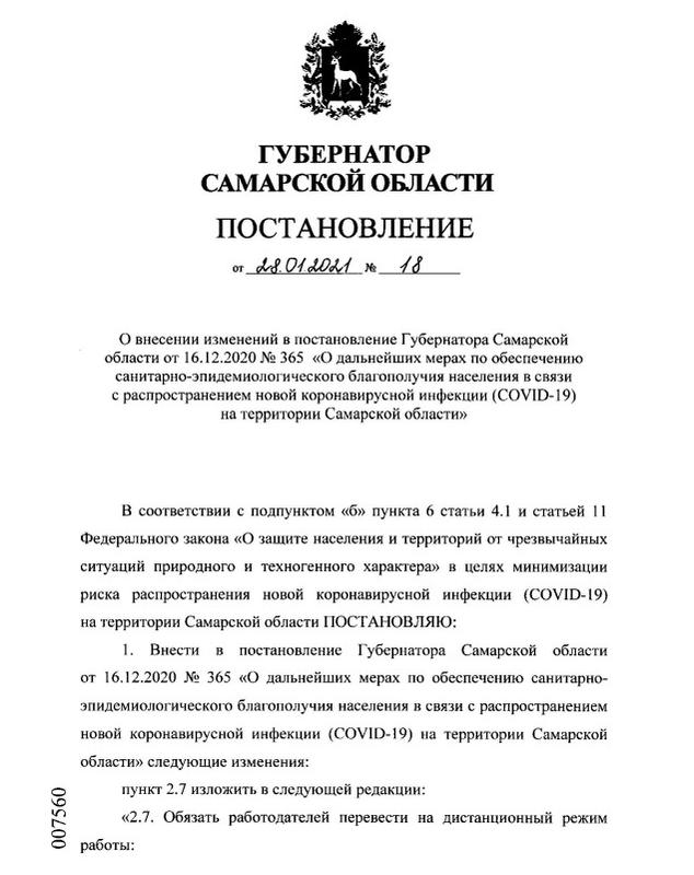 Сегодня, 28 января, губернатор Самарской области Дмитрий Азаров закрепил в своем постановлении ограничительные меры, о которых сообщили на недавнем заседании оперштаба. Напомним, для противодействия распространению «ковида» решено обязать работодателей - отправить своих беременных сотрудниц на дистанционную работу. До этого ограничение носило рекомендательный характер. Ранее жительницы области просили главу региона в соцсетях перевести женщин «в положении» на дистанционный режим работы в период пандемии. Губернатор принял решение, как только это позволили сделать изменения в трудовом кодексе РФ. Кроме того, постановление продлевает действующие ограничения до 14 февраля. Это, в частности, значит, что пожилые будут обязаны соблюдать самоизоляцию, а дети не смогут посещать торговые центры без сопровождения законных представителей.