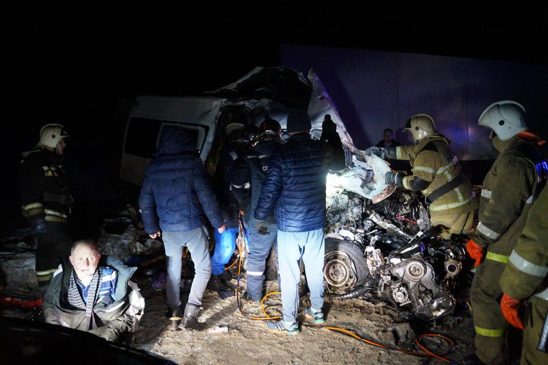 Выжившие пассажиры микроавтобуса Citroen, что попали в жуткую аварию на трассе М-5 под Сызранью с трудом приходят в себя. Люди в шоке. На текущий момент известно о пяти погибших, чьи личности устанавливаются. В аварии как минимум 11 пострадавших. Корреспондент портала «маленькая Сызрань» побывал на месте аварии - люди в шоковом состоянии. Напоминаем, что сегодня поздно вечером большегруз DAF столкнулся с пассажирским автобусом Citroen и автомобилем Chevrolet Niva. Со слов водителя большегруза, он ехал со стороны Москвы. Во встречном потоке, где дорога начинает сужаться после поста весового контроля, на обгон пошли легковые машины. Его фуру занесло на встречную полосу, где в это время ехали легковые автомобили и микроавтобус. В итоге грузовик столкнулся с ехавшим последним автобусом. После столкновения микроавтобус и фура вылетели в сугроб на обочине.
