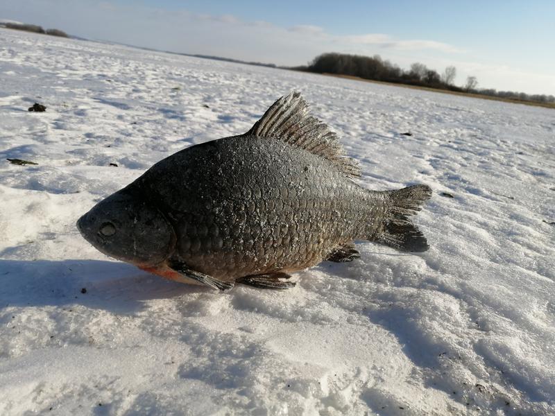 теплой воде, например, недалеко от стоков в реку, или при оттепели карася реально