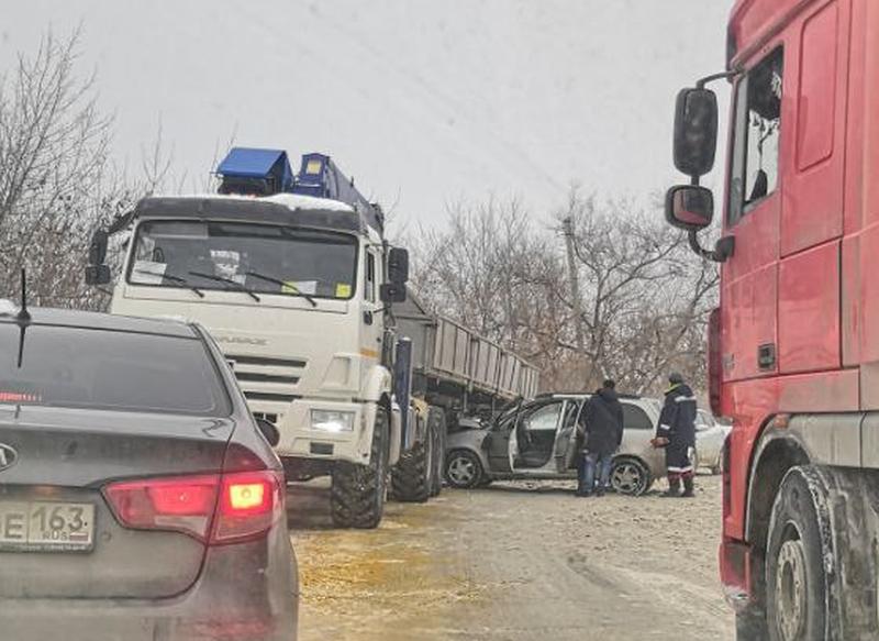 В промзоне Сызрани, на так называемой «пьяной» дороге в сторону ТЭЦ, скопилась небольшая пробка из автомобилей, дорогу которым перегородили столкнувшиеся легковушка и большегруз. У «Нефтехиммонтажа» Калина довольно жестко влетела под Камаз с полуприцепом. Судя по расположению участников ДТП, тягач проходил затяжной крутой поворот, когда легковой автомобиль влетел под полуприцеп большегруза. Возможно, легковушку занесло на скользкой дороге, либо водитель Камаза с длинным полуприцепом не рассчитал маневр на вираже - в результате ДТП Калина оказалась поперек прицепа и проезжей части. Пока не сообщается, есть ли пострадавшие в этом столкновении. В эти минуты, судя по сообщениям автомобилистов, идет расчистка объездной дороги, которая помогла бы транспорту объехать незадачливых участников столкновения.