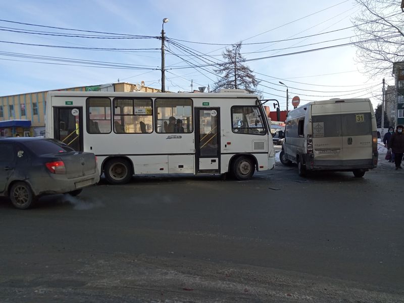 На оживленном перекрестке Сызрани столкнулись два автобуса. В месте аварии затруднен проезд