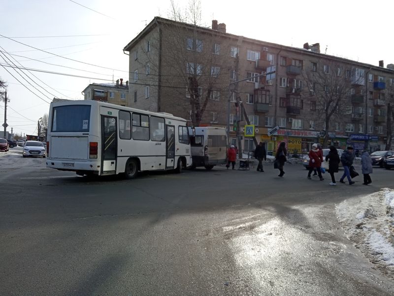 В Сызрани на улице Московской, неподалеку от автовокзала, столкнулись два автобуса – ПАЗ 28 маршрута и Peugeot 31 маршрута. Авария произошла на перекрестке с улицей Октябрьской. Оба транспортных средства ехали со стороны автовокзала. Идущий первым Peugeot на перекрестке пошел на разворот, когда следующий позади него ПАЗ ударил микроавтобус в задний левый угол. В ПАЗике находилось несколько пассажиров, а Peugeot шел пустым, так как был не на маршруте. В выходные дни многие горожане спешат на расположенный у автовокзала рынок, так что перекресток довольно загруженный. В месте аварии проезд затруднен, растет затор.