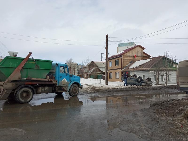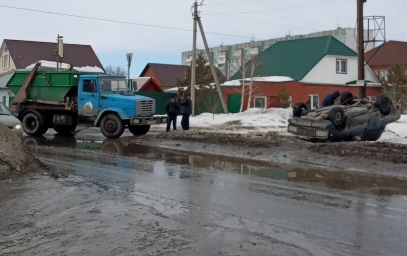 «Семерка» попыталась обойти бункеровоз и в результате легла на крышу