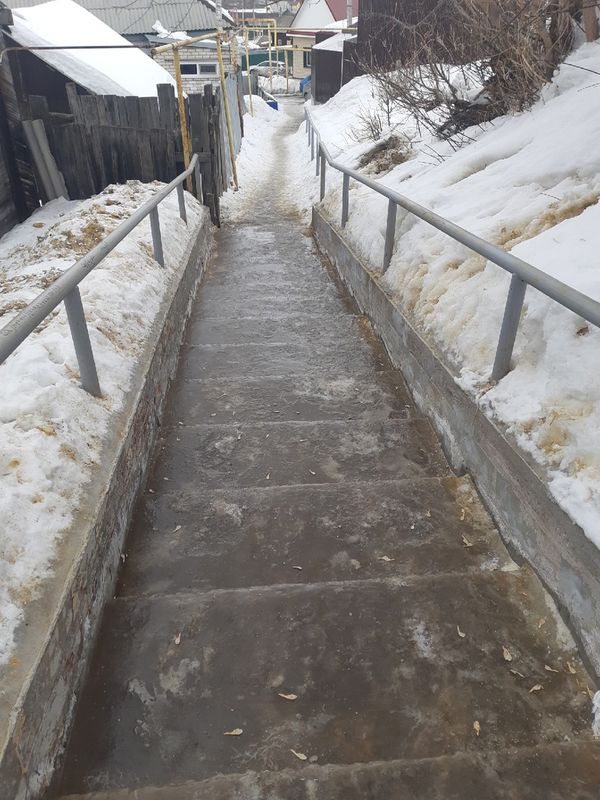 В Сызрани на скользкой лестнице падают пешеходы. Жалуются горожане и на дороги