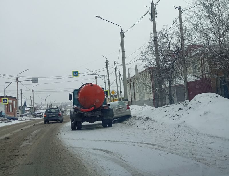 Иномарка вжалась в сугроб после столкновения с ассенизатором в Сызрани