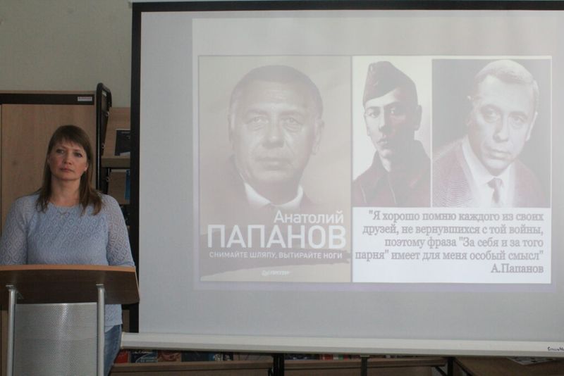 Библиотекари Токарева М.И. и Колодкина Н.А. представили студентам слайдовую презентацию «Дороги войны Анатолия Папанова», фрагменты из фильмов «Живые и мертвые», «По семейным обстоятельствам», «Берегись автомобиля», «Холодное лето 53-го».