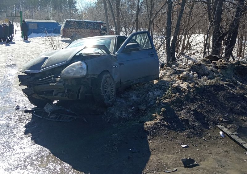 Рядом с кладбищем на выезде из Сызрани Приора протаранила в бок Ларгус - пострадал водитель Ларгуса