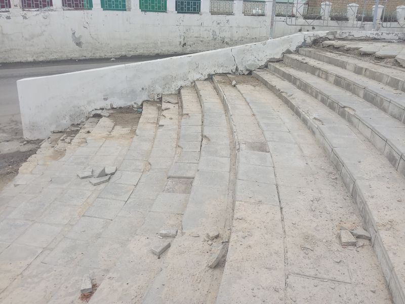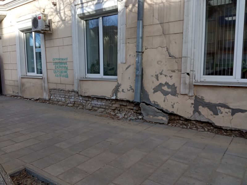 Сошедший снег обнажил некоторые участки в Сызрани, где зима потопталась особенно рьяно. Где-то асфальт поплыл, где-то ямы на проезжей части стали шире да глубже. А у стадиона «Центральный» осыпались ступени на лестнице, что ведет к спортивной арене. И как можно судить по фотографиям с места, осыпались щедро. То ли снег так неудачно счищали в течение всей зимы, то ли спортсмены на нем тренировались, бегая вверх-вниз. Но лестница стала изрядно щербатой. А на улице Советской с дома №51 осыпается и штукатурка со стены, и цемент с балконов на верхних этажах. Разумеется, свою лепту в разрушение облицовки дома внесли земляные работы по переносу коммуникаций в траншее на Советской. Мимо дома проходить опасно, поэтому участок огородили предупреждающей лентой. Однако есть большая вероятность того, что упомянутые две территории – не единственные, где снег что-то прихватил с собой.