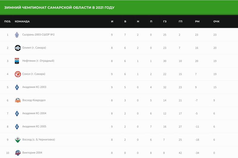 самарский «Олимп» на три очка, разница мячей - 23, в то время как у