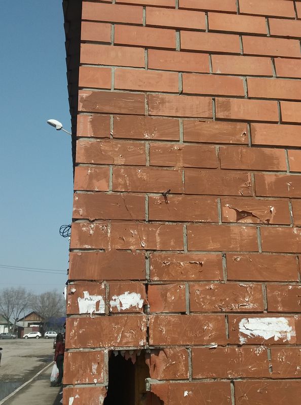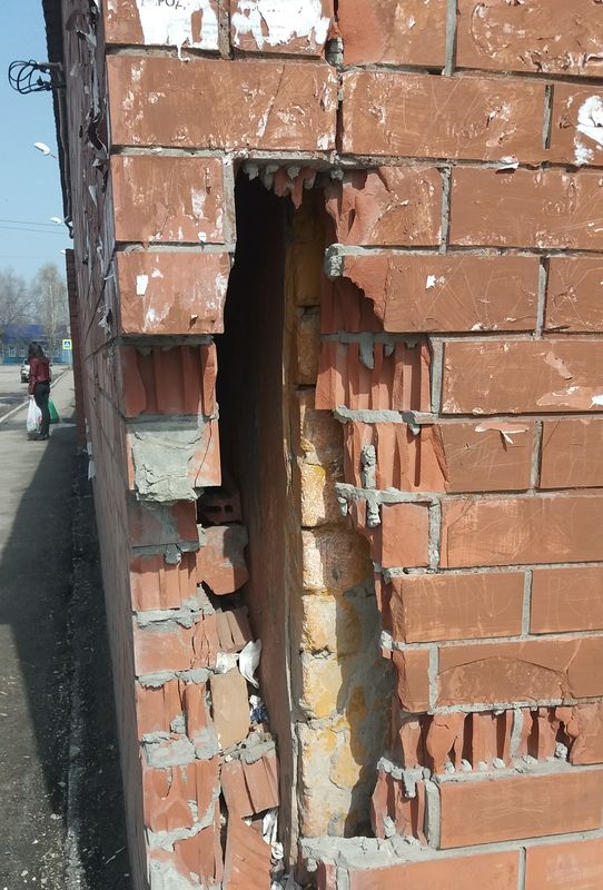 Кирпичная стена мастерской школы №6, что служит также своеобразным ограждением от покупателей торгового центра «Автобус», давно пугает пешеходов своим аварийным состоянием. Несколько лет назад угол стены обвалился – не исключено, что его повредили из хулиганских побуждений. Еще через некоторое время с одной стороны угла вокруг дыры пошли трещины. Но их кое-как закрасили. Однако недавно прохожие заметили, что и с другой стороны угла тоже пошли трещины. И не снизу, как в первом случае, а сверху. Стена высокая, в несколько метров, и стоит как раз вдоль пешеходной дорожки. Горожане признаются, что опасаются ходить мимо, и вынуждены выходить на проезжую часть. Они не сомневаются, что в скором времени этот угол рухнет.