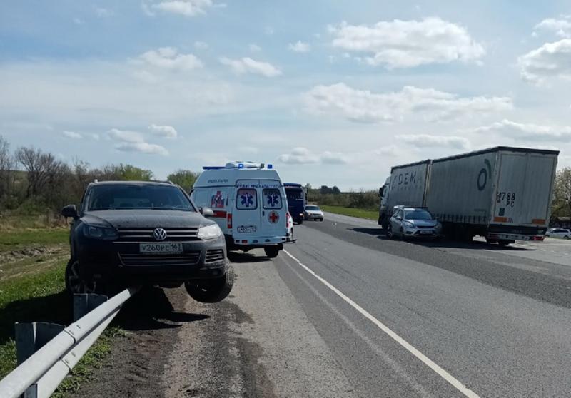 Утром 7 мая в Самарской области столкнулись три автомобиля. Около десяти часов утра на 937 километре федеральной автодороги М-5 в районе села Переволоки Сызранского района столкнулись три автомобиля - Ford Focus, Калина и Volkswagen Touareg. Как сообщили очевидцы, в момент ДТП в Ford врезалась автоледи на Калине, а водитель Touareg, пытаясь уйти от столкновения, вильнул в сторону и залетел на металлический отбойник. Известно, что на месте аварии работала бригада медиков. Они на месте оказали помощь женщине из Калины, однако от госпитализации она отказалась.