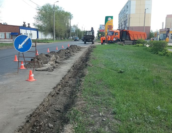 Вчера, 8 мая, дорожники приступили к рытью траншеи под бордюры.