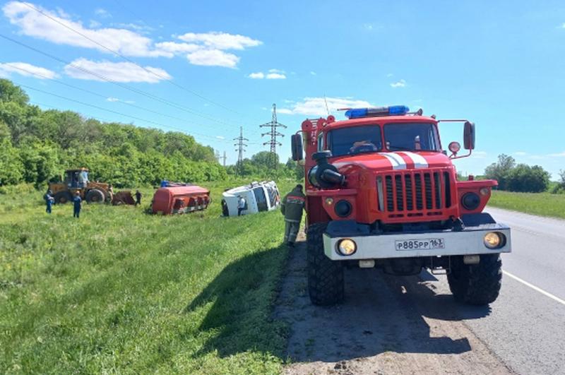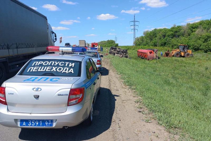 На трассе под Сызранью цистерна с нефтепродуктами перевернулась в кювет. На месте работают сотрудники ГИББД и пожарные