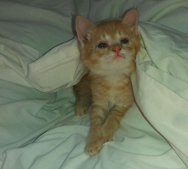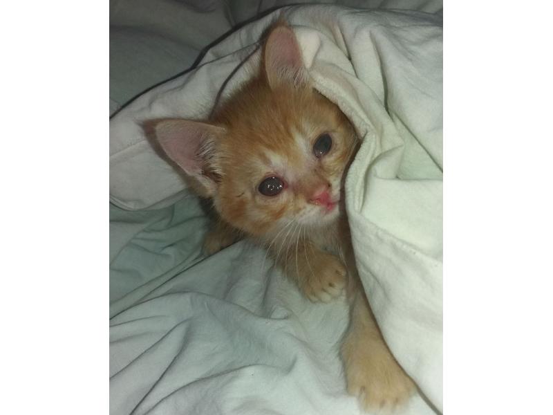 Однако спустя несколько часов, излазив тот палисадник вдоль и поперек, малыша удалось отыскать. Он оказался совсем крошечный, поэтому спасители решили, что ему всего несколько недель. Да и молоко пить из блюдца он не умел, тыкался в него мордочкой. Правда, к тому времени, соседи уже поняли, что котенок плохо видит – на глазах были гнойники. Сперва думали, что это обычный конъюнктивит, но все оказалось куда сложнее.