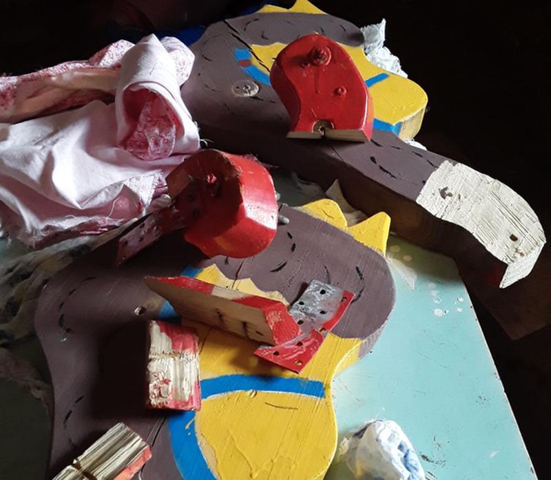 ближайшие дни он собирается восстановить головы у коней на карусели: