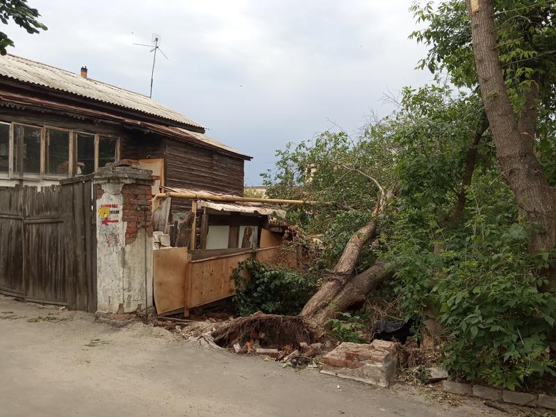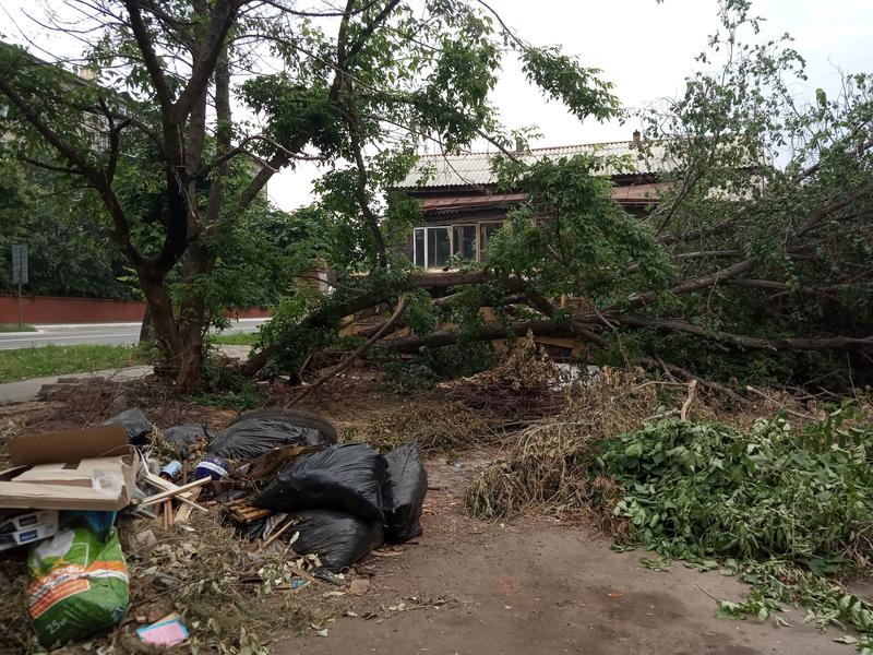 Больше недели лежит в центре Сызрани вывороченное с корнем большое дерево. Год назад, 16 июля, кто-то поджег мусор около дерева, огонь перекинулся было на него, но прибыли пожарные и потушили пламя. Уже тогда жители дома №136 просили коммунальные службы спилить дерево, но оно так и оставалось расти около дома, пока в начале июня не налетел порывистый ветер, и дерево рухнуло рядом с домом и проходящей там же газовой трубой. По счастливой случайности дерево никого не убило, не разрушило дом и не вызвало аварию газопровода. Корни могучего дерева подломились, но, падая, оно смогло вывернуть из кладки старые кирпичи. Остается только гадать, что было бы, окажись в момент падения дерева рядом человек: центр города - место оживленное. В любом случае, валяющееся, как в глухом лесу, в центре Сызрани дерево не красит облик главной улицы города.
