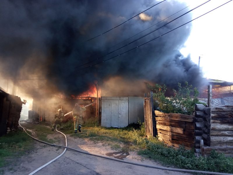 В Сызрани открытым пламенем горят два дома в районе улицы Фрунзе
