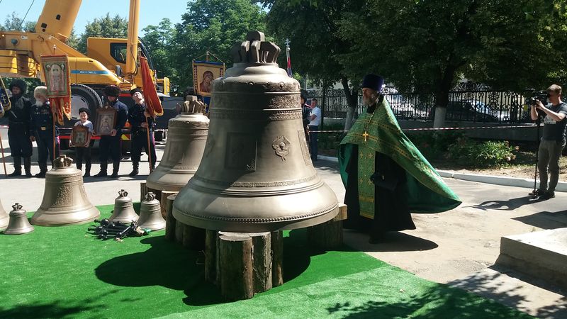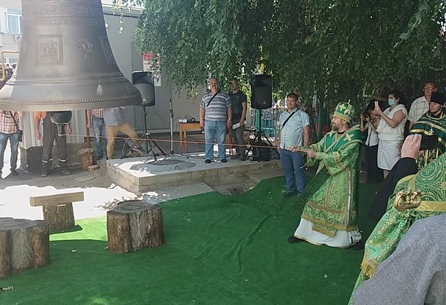 После молебна и проповеди владыки Леонтия прошло торжественное освящение колоколов, а затем собравшиеся услышали звон двух самых больших из них: «Апостол Андрей Первозванный» и «Архимандрит Павел Леднёв».