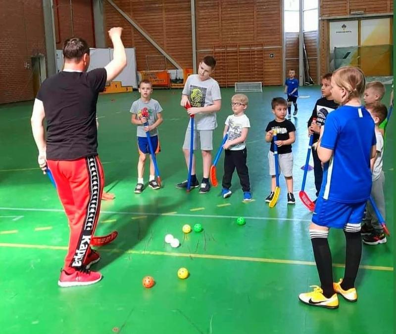 ребята увлеченно тренируются. В флорболе мячик - легкий и дырявый, как