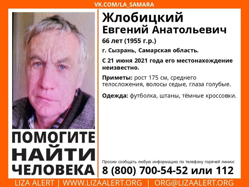 Пожилой сызранец Евгений Анатольевич Жлобицкий, 66 лет, пропал еще 21 июня. Вторую неделю близкие не могут найти мужчину. Поисками занята полиция, также к поискам подключились добровольцы группы «ЛизаАлерт». Известно, что мужчина - среднего роста, 175 см, среднего телосложения, голубоглазый, волосы седые. В день пропажи был одет в футболку, штаны и темные кроссовки. Любую информацию о пропавшем более недели назад человеке можно сообщить в полицию по телефону 112 или в группу поиска «ЛизаАлерт». Пока за поиском сызранца не закреплен куратор, можно сообщить данные о пропавшем мужчине, перейдя по ссылке.
