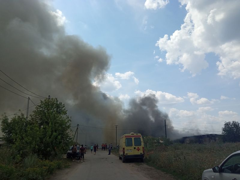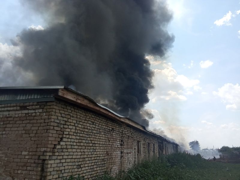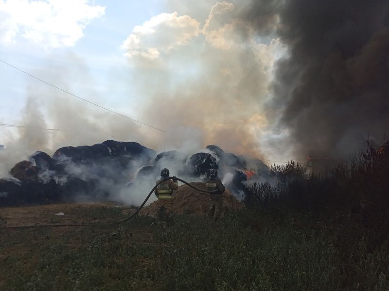 Под Сызранью горит ферма, на месте несколько пожарных расчетов борются с огнем