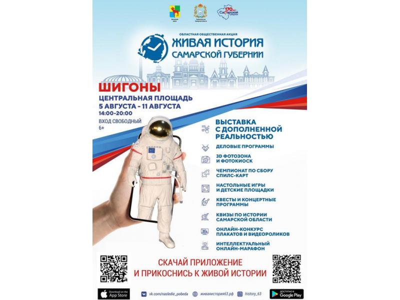 Фестиваль уличного кино, игры и большая деловая программа подготовлены для жителей Шигонского района. С 5 по 11 августа там пройдет областная общественная акция «Живая история Самарской губернии». В 18 часов на центральной площади Шигон откроется интерактивная выставка с дополненной реальностью (AR) «Живая история Самарской губернии». Акция, приуроченная к 170-летию Самарской губернии, стартовала в виртуальном пространстве в мае 2021 года и продлится до ноября. В центре внимания уникального масштабного проекта – основные вехи в истории становления нашего региона. Программа торжественного открытия будет включать в себя различные мероприятия: уличный фестиваль кино, проведение тематической викторины по объектам выставки, интерактивную площадку «Поздравь Самарскую губернию с юбилеем», детскую площадку с анимационной игровой программой и многое другое. Мероприятие предполагает участие руководства Шигонского района и депутата Губернской думы Екатерины Кузьмичевой.