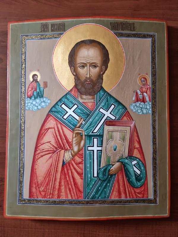 иконописцы по намоленной доске восстановили образ святителя, в стиле «бочкаревского» письма, добавив некоторые элементы старообрядческого