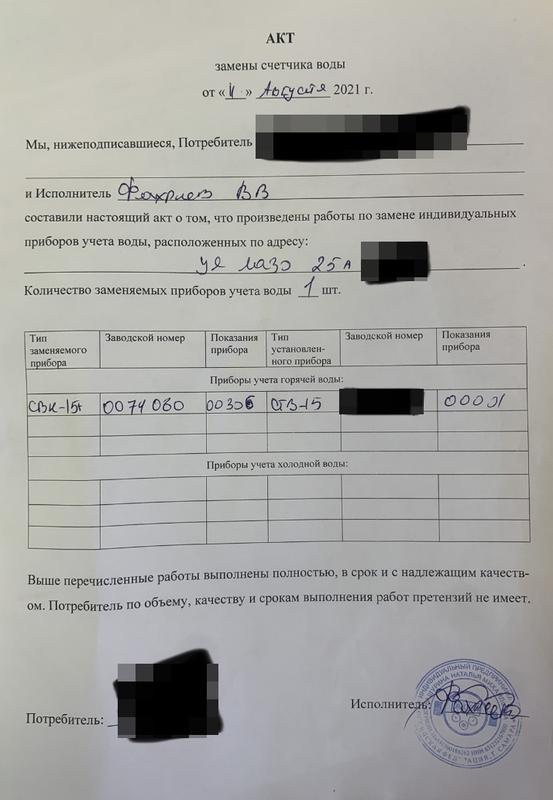 счетчика воды и квитанцию об оплате ИП Вашуриной Натальи Михайловны. К
