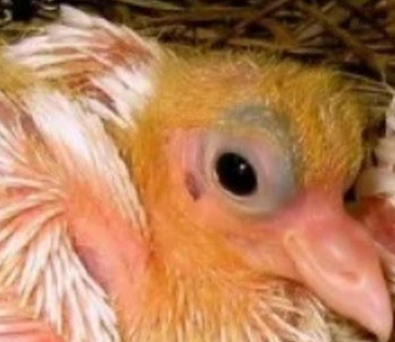 необычные, почти лысые, ярко-желтого оперения (на одном из фото камера