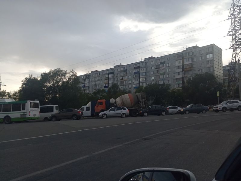 участники аварии. К настоящему времени пробка уже дошла до пешеходного перехода у бывшего здания лыжной базы.
