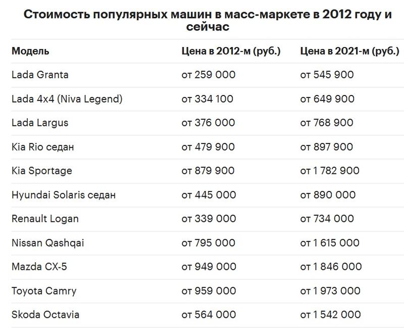 Ценники переписываются ежемесячно: «Автостат» сравнил цены на автомобили с 2012 по 2021 год