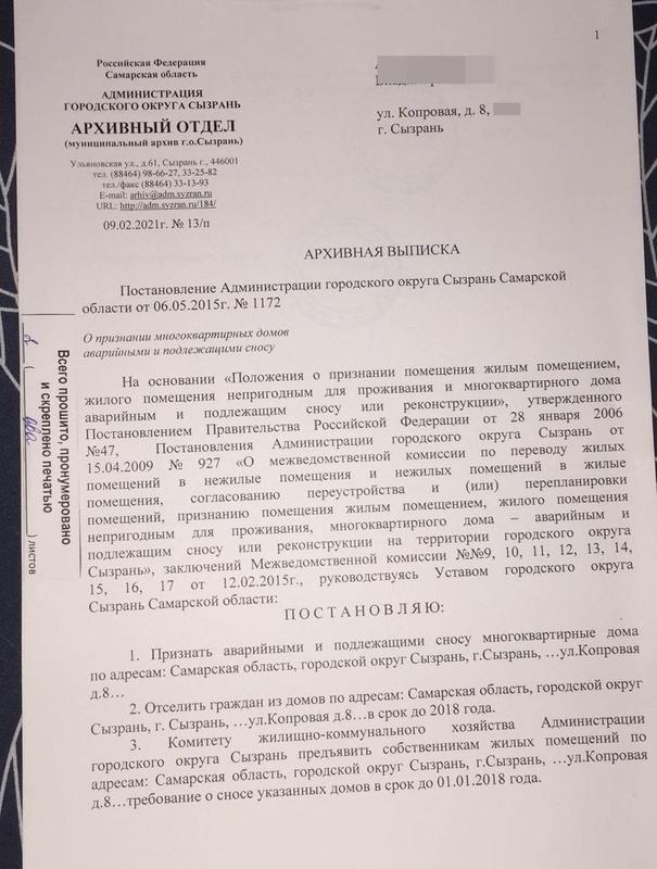 Копровой. «Произошли и долгожданные внесения изменения в программу. В перечень вошли многоквартирные дома блокированной застройки (от Сызрани - 86 домов)», - сообщили городские власти. Расселение многострадального